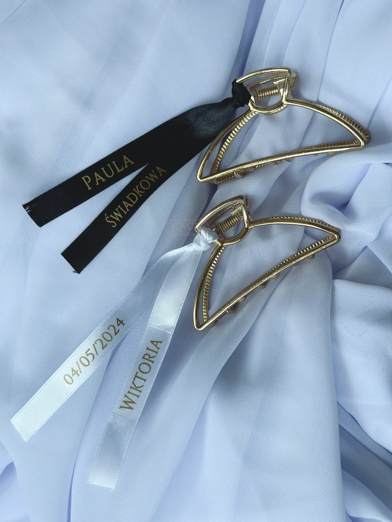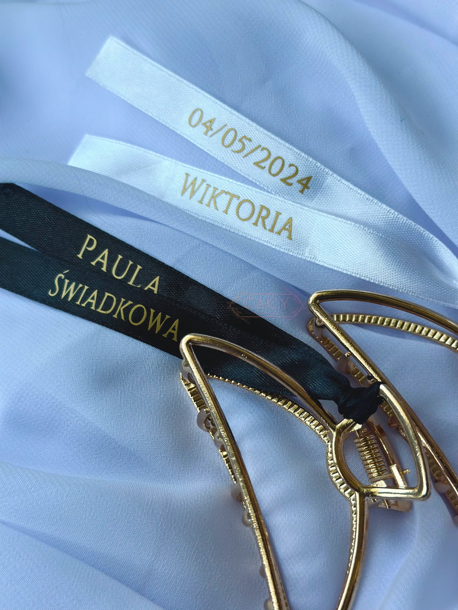 budżetowe, a zarazem eleganckie podziękowanie na wieczór panieński w postaci złotej klamry z personalizowaną wstążką!