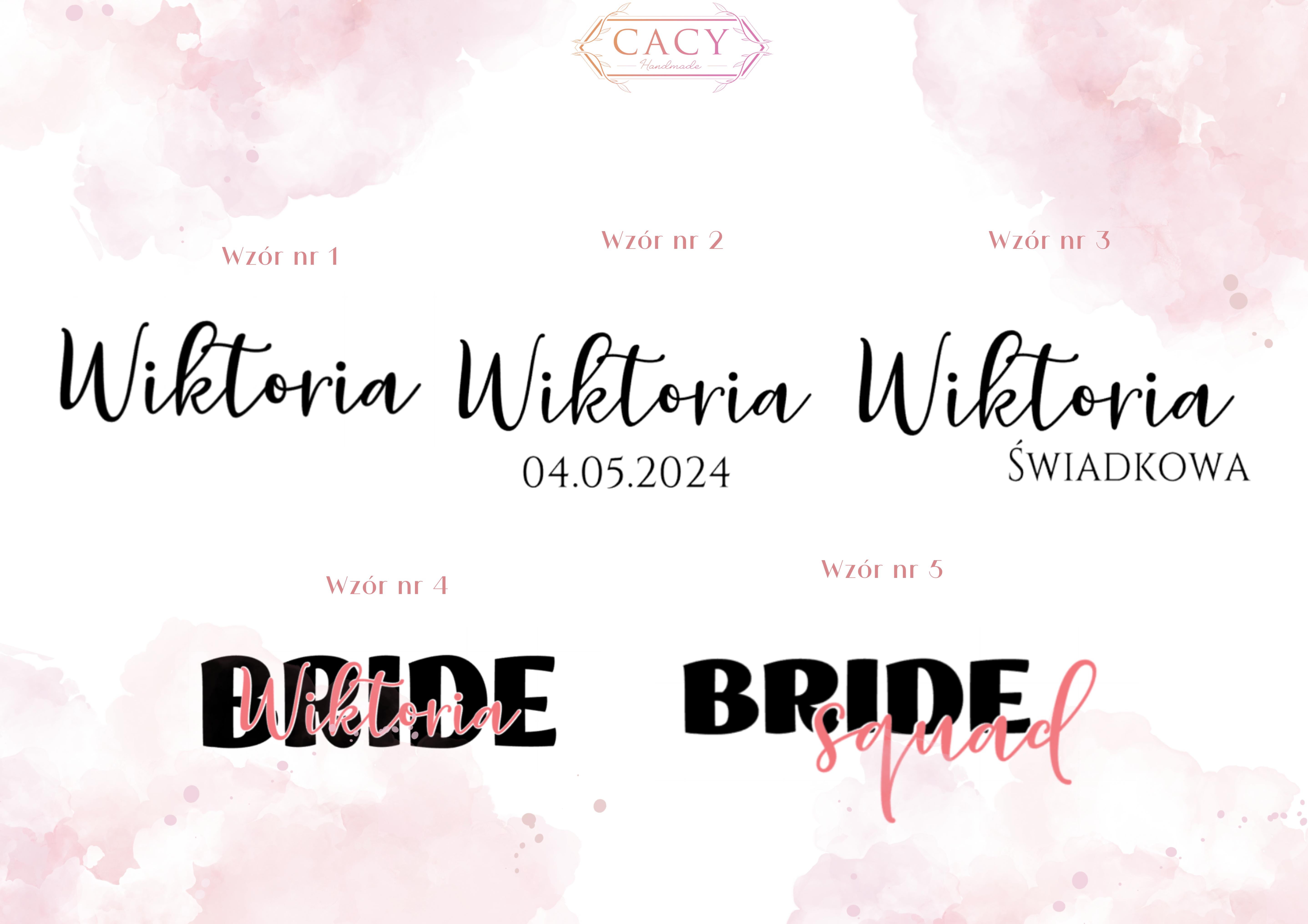 - podaj imię/imię+datę/+imię+określenie- w zależności od wybranego wzoru. UWAGA! nie umieszczamy na kubku nic poza tym co widnieje na wybranym wzorze. zatem jeśli np. wybierzesz wzór nr 5 i podasz nam imię itp.- nie zostanie ono uwzględnione.