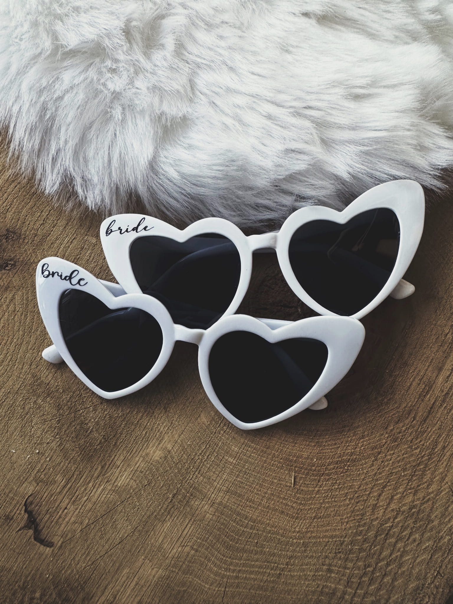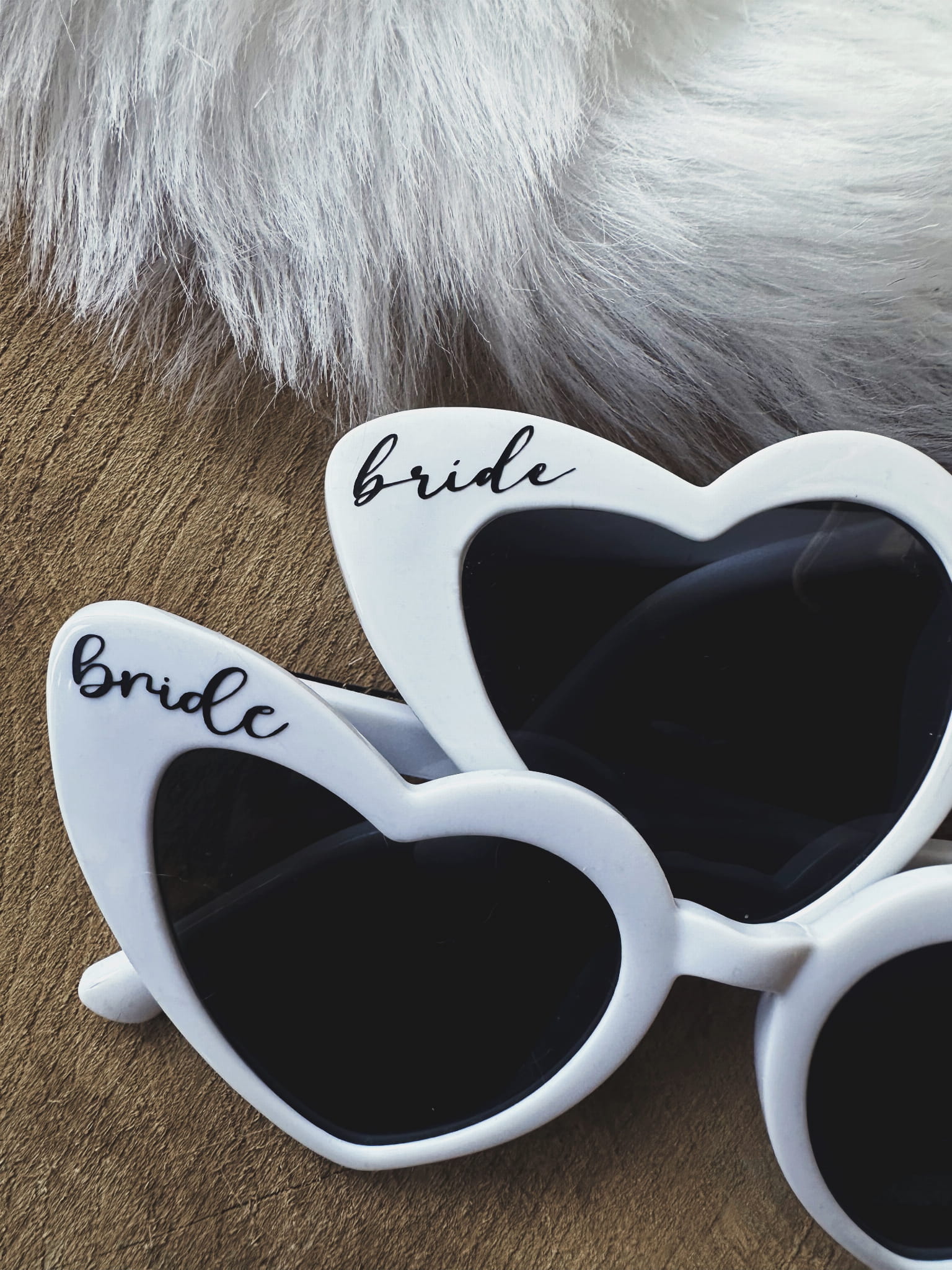 okulary z minimalistyczną personalizacją "bride" stworzą niebanalną pamiątkę z Twojego Wieczoru Panieńskiego!