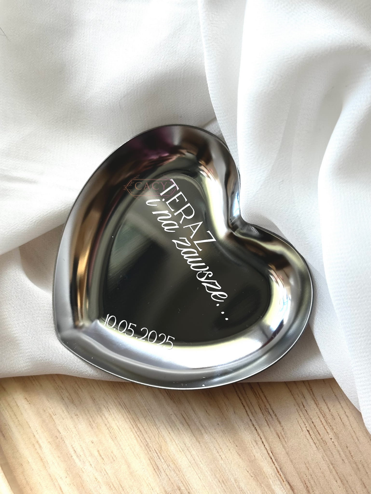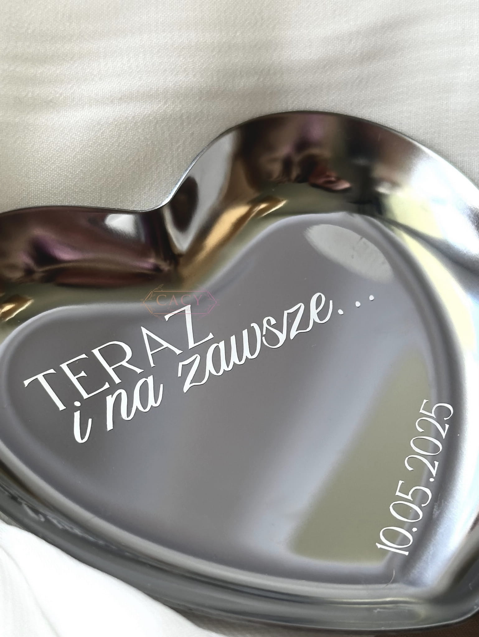 metalowy spodek na obrączki w kolorze srebrnym z Waszą personalizacją!