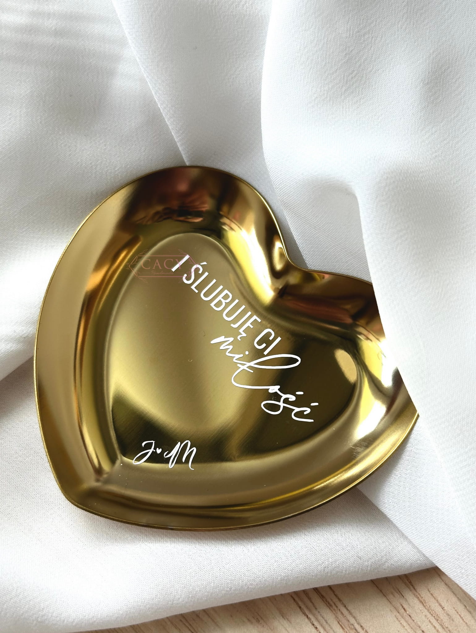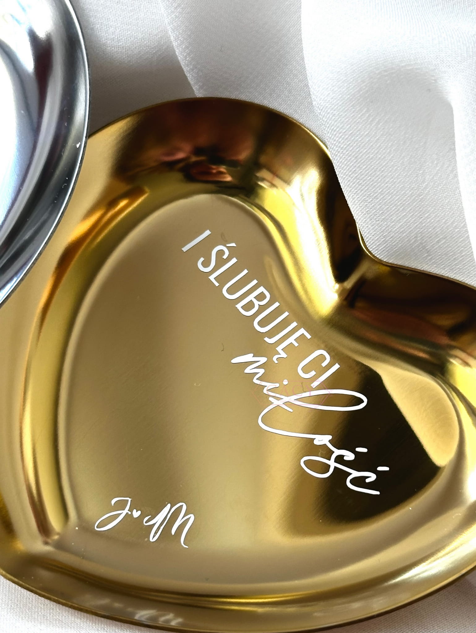 metalowy spodek na obrączki w kolorze złotym z Waszą personalizacją!