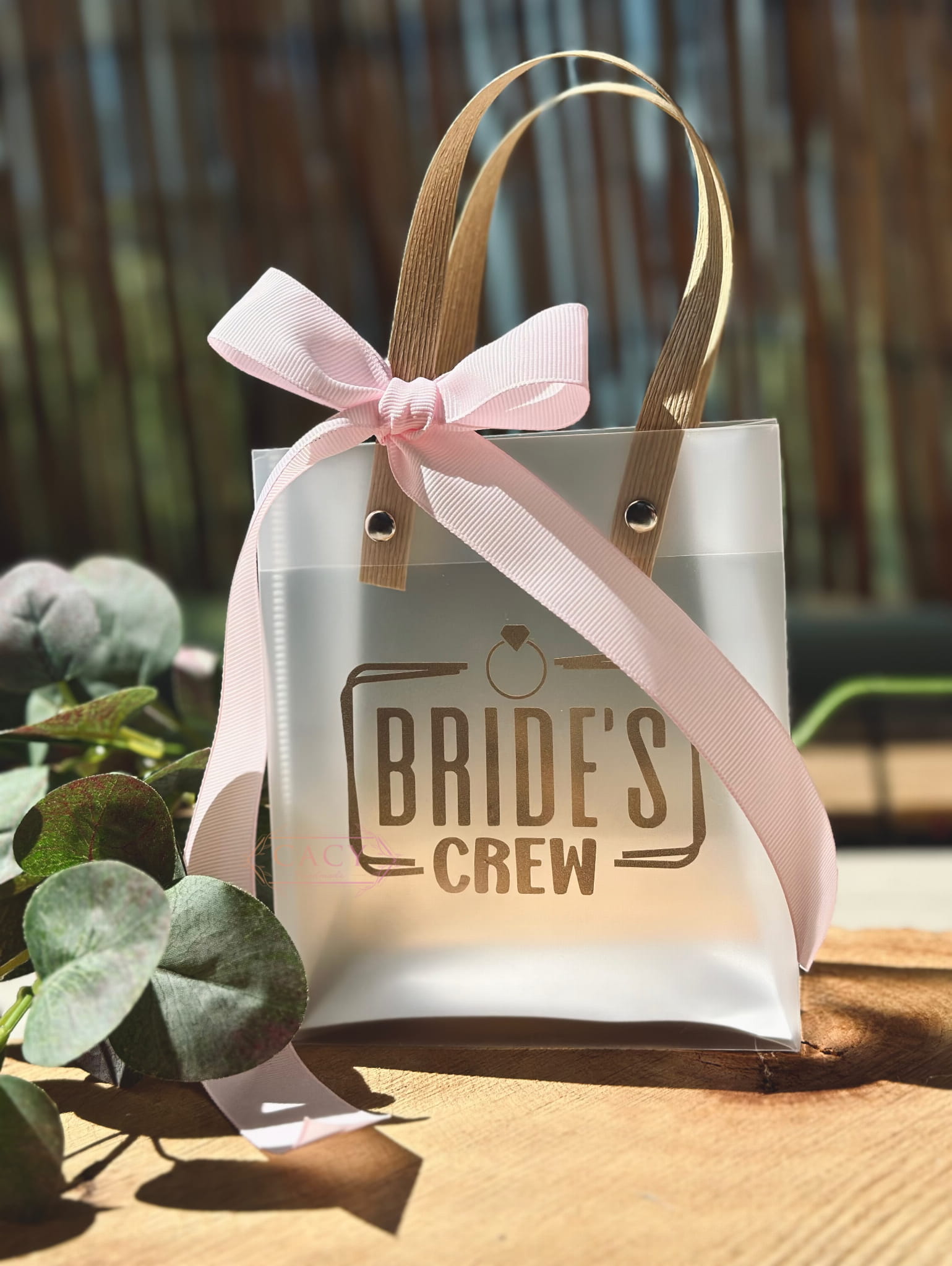 przedstawiamy specjalnie spersonalizowaną torbę o wymiarach 13x15, z bambusową rączką, która pomieści same wspaniałości, którymi planujesz obdarować swój bride squad!