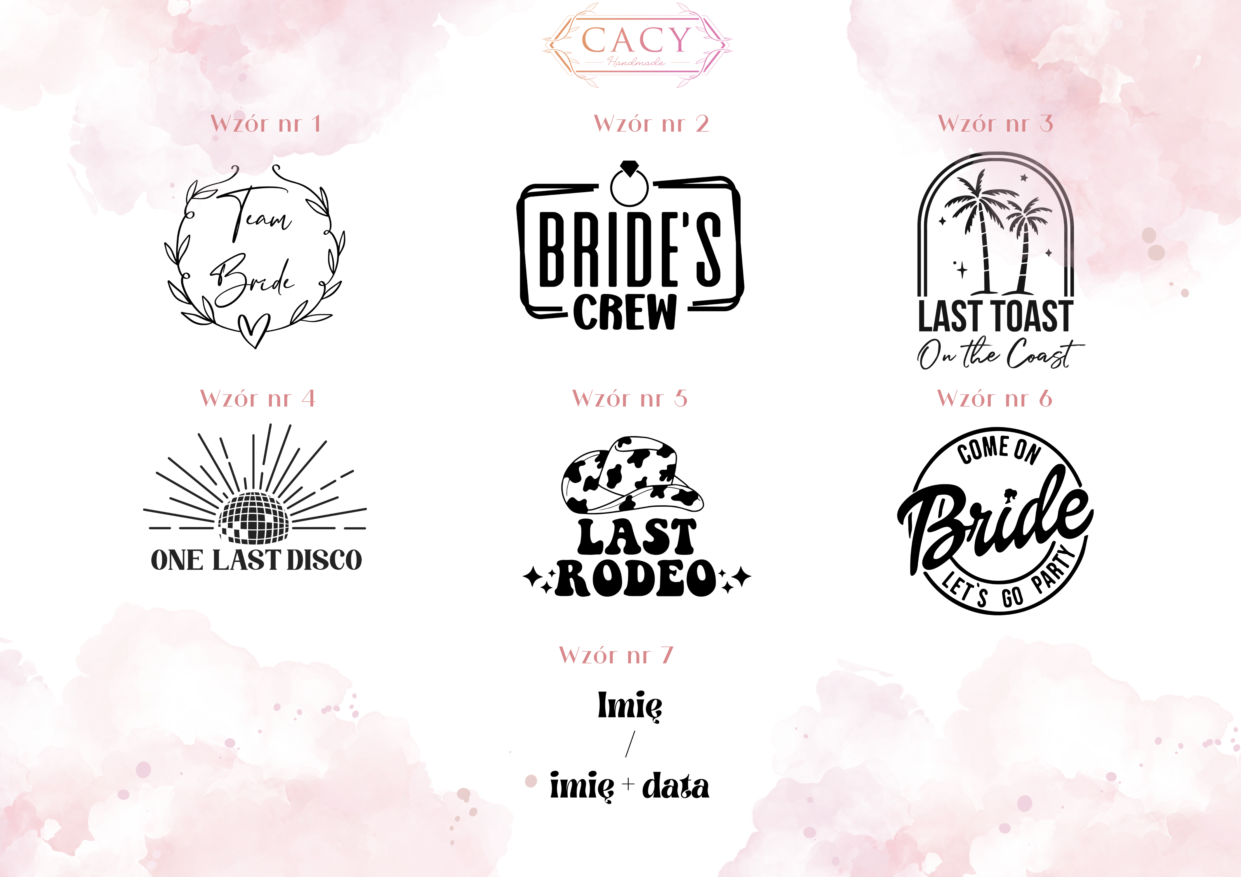 - wybierz wzór, który umieścimy na torbie (wybierając wzór nr 7, na torbie znajdzie się jedynie podane imię/imie+data)