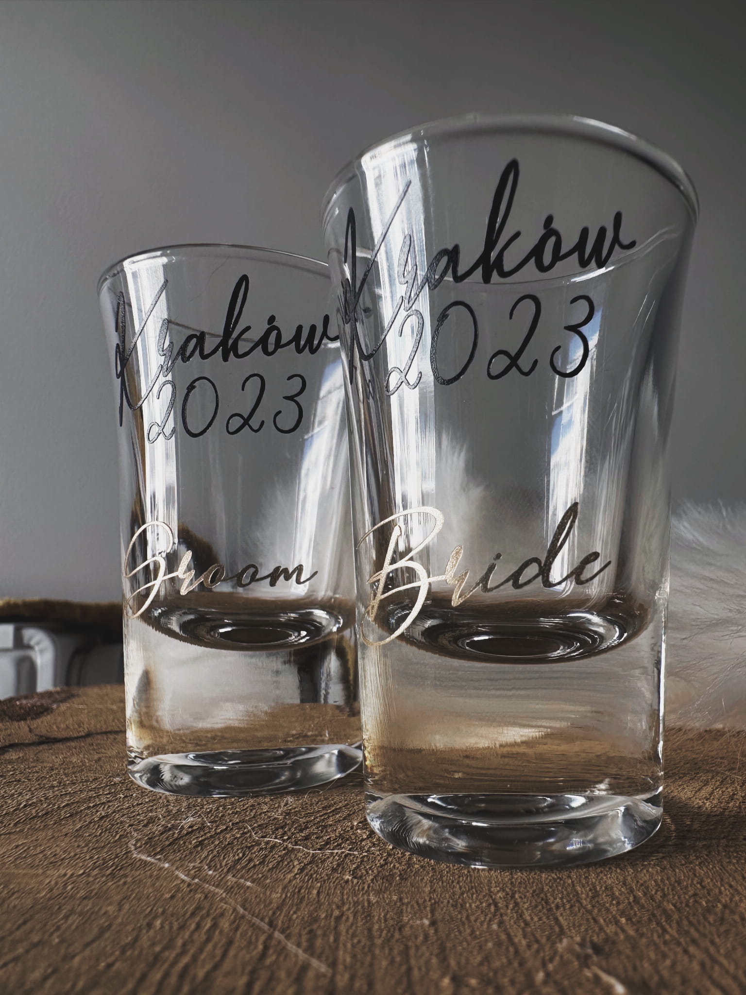idealnie sprawdzą się do tego kieliszki wódki, o przyzwoitej pojemności 30 ml, na których możesz umieścić personalia swoich gości, ale również dodać coś krótko od Was!