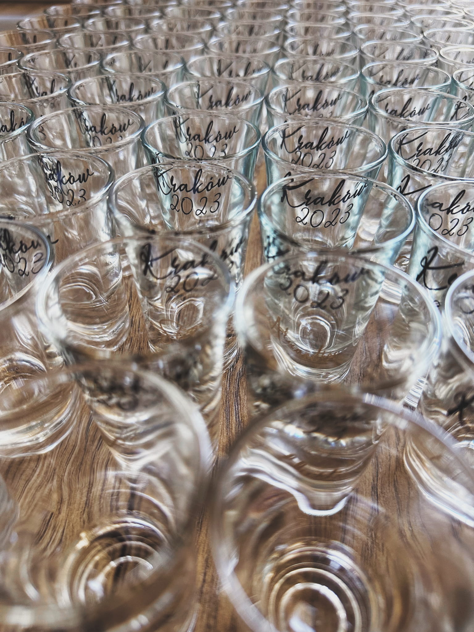 jeśli chcesz dodać dodatkowe treści na kieliszek (pole dodatkowe informacje), jak np. w zdjęciach przykładowych "Kraków 2023", pamiętaj proszę, że na kieliszku jest niewiele miejsca i aby treść była czytelna w całości z frontu, nie może być jej zbyt dużo, ogranicz się zatem do max. 3 słów :)